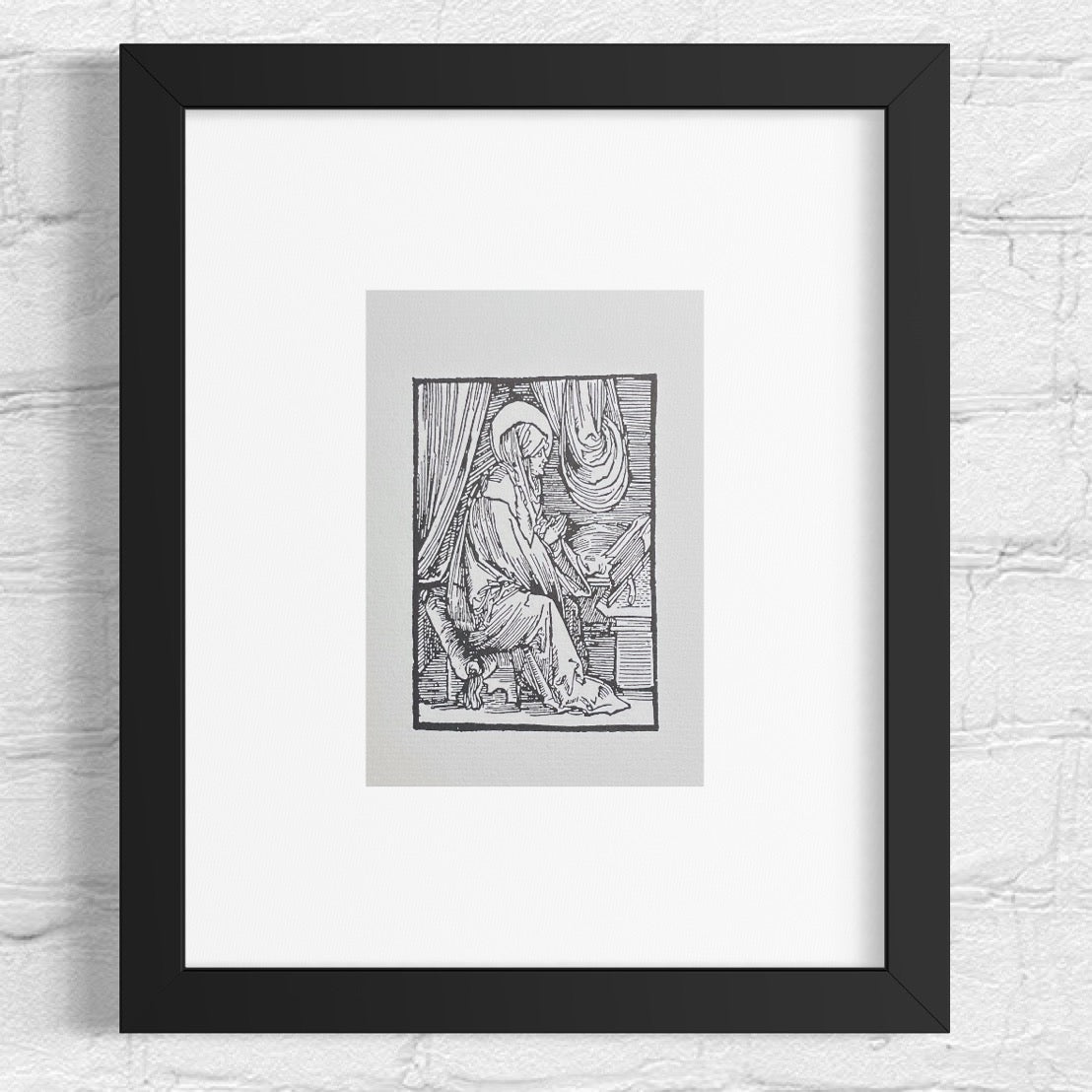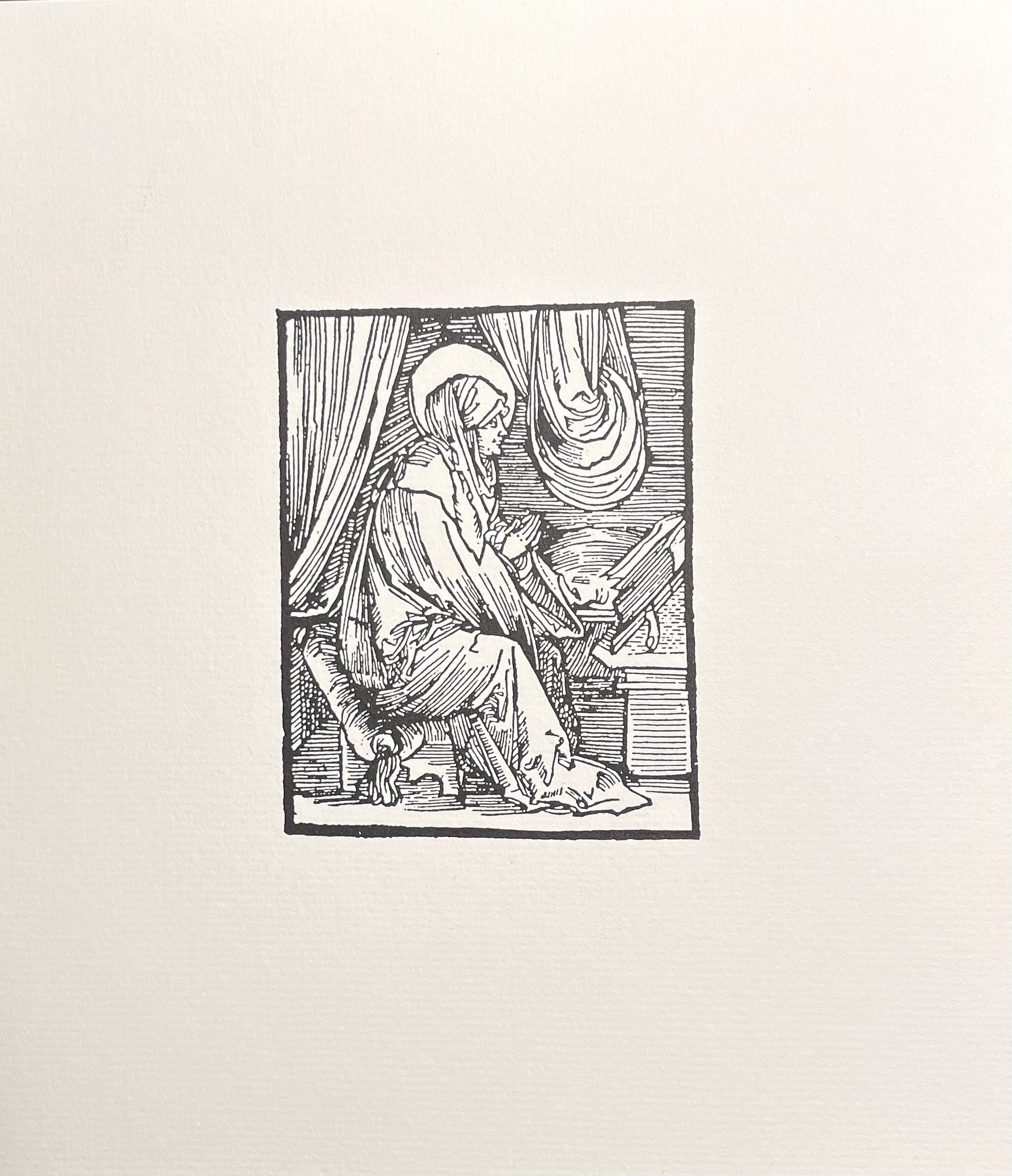 Just Dürers träsnitt från den här perioden är troligen utfört av hans lärlingar, men det finns inte nedtecknat om så var fallet. Trycket kommer från samlingen Birgitta Suecica, Reuelationes sancte Birgitte. I originalet innehåller trycket även en separat avbildning av Petrus Olavi, eller Petrus av Alastra. Just den bilden har vi inte hittat någon reproduktion av.