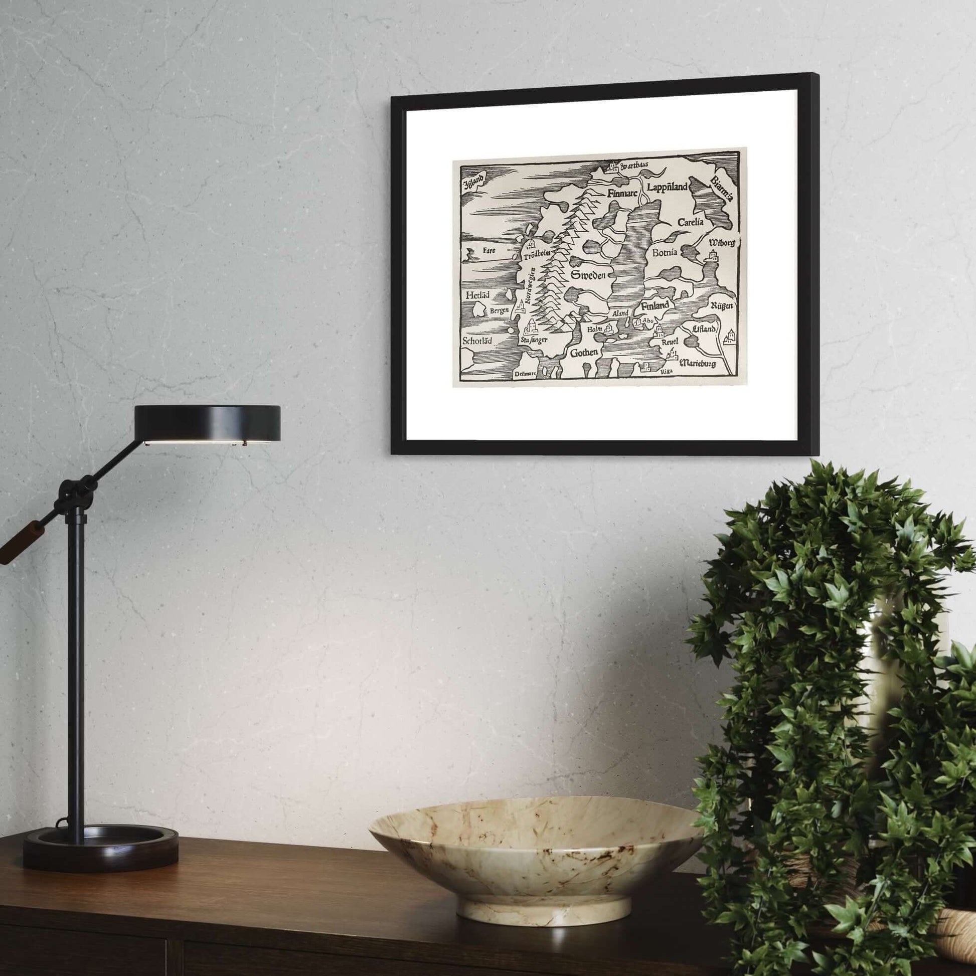 En av anledningarna till att verket blev så uppskattat var de fina träsnittskartorna över världen, från några av dåtidens giganter inom konsten. Här varsamt reproducerad och förstorad, från bokverkets relativt små bilder, till en vacker plansch som gör sig bra i ram.